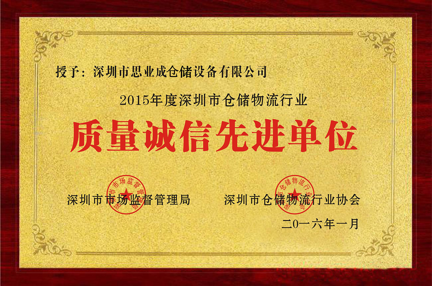 质量诚信先进单位